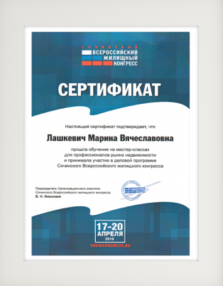 • Участник мастер-классов и деловых программ Сочинского Всероссийского жилищного конгресса
