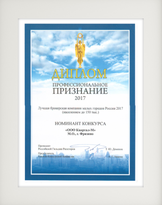 Агентство «Квартал-М» номинант конкурса «Лучшая брокерская компания малых городов России 2017 (Российская Гильдия Риэлторов)